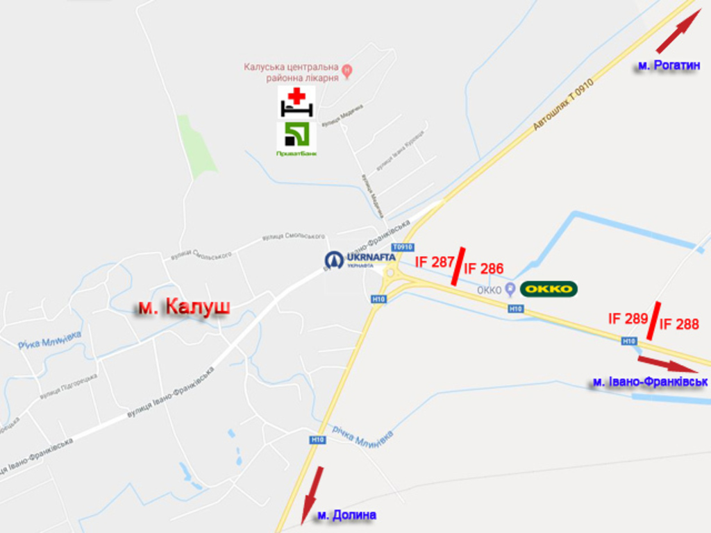 Орієнтир: В'їзд у місто зі сторони Києва, Тернополя, Коломиї, Тисмениці, від АЗС ОККО до Епіцентру, Арсену, 555-Велес, МЕТРО